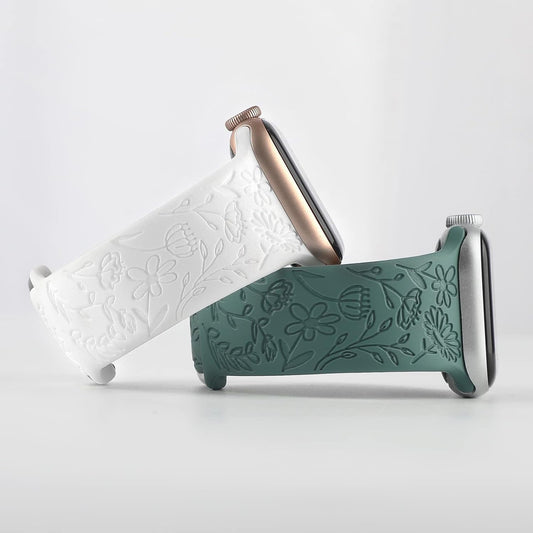 2 Pack Flower Engraved Sport Strap Compatible with Apple Watch Bands 38Mm 40Mm 41Mm, Women Floral Laser Soft Silicone Wristband Replacement Iwatch Series 10 9 8 7 6 5 4 3 2 1 SE